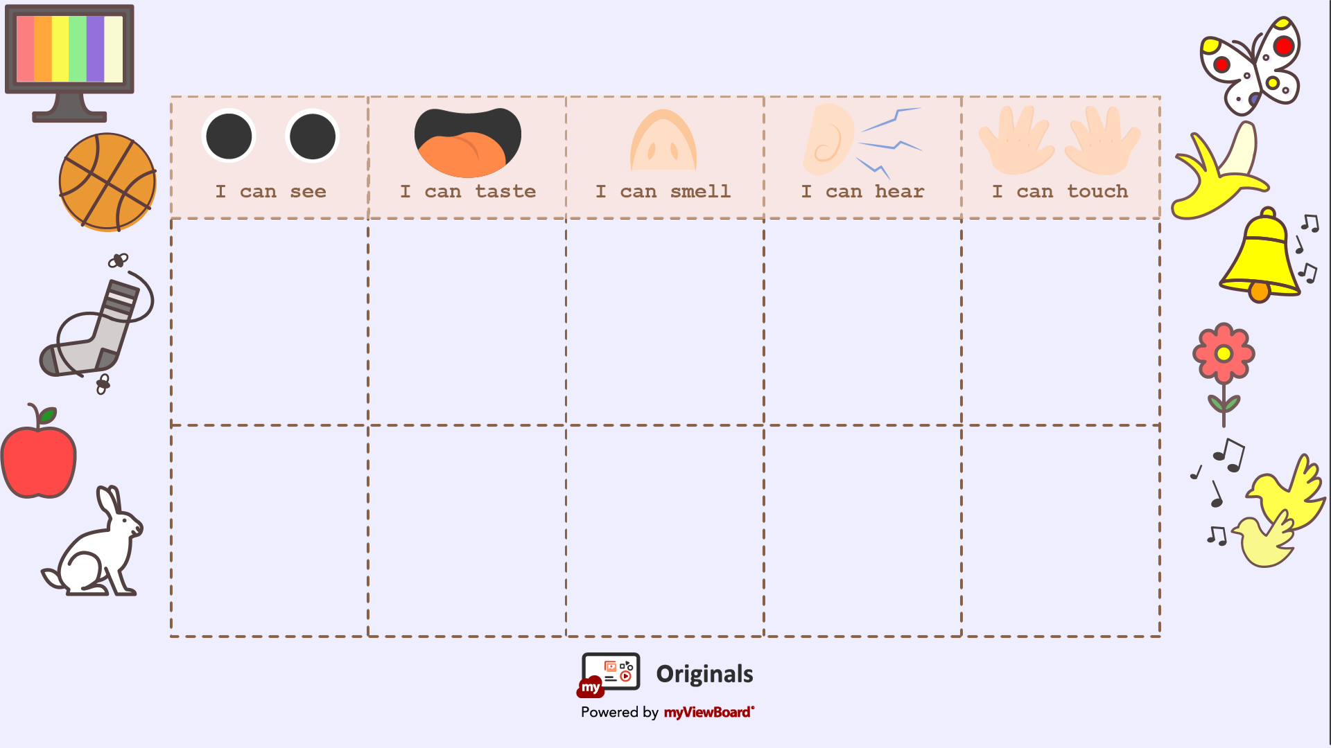 - Five Senses Anchor Chart: Drag the pictures under the corresponding senses that you use to experience it.
