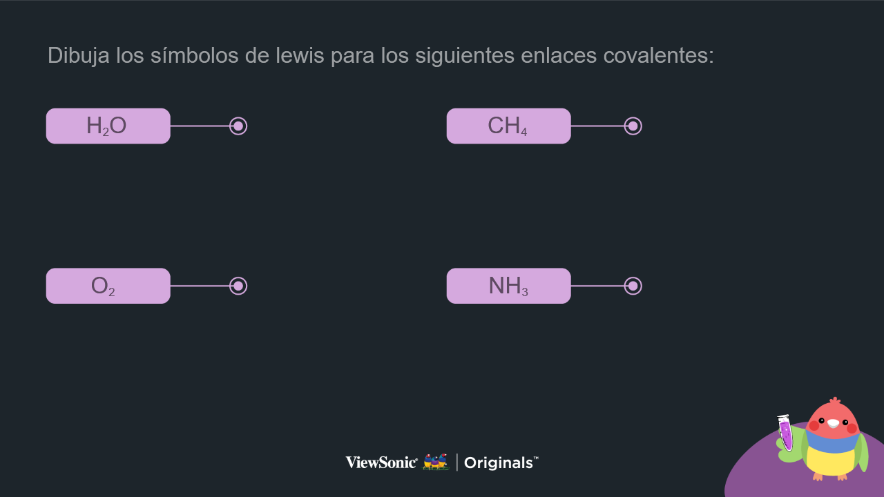 • Los alumnos pueden dibujar el símbolo de Lewis de cada elemento para comprender cómo se unen covalentemente en cada molécula.