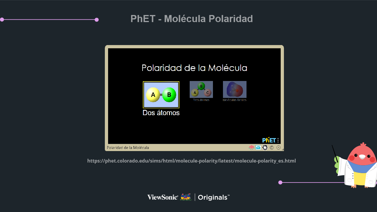 - Actividad PhET: Los profesores/alumnos pueden utilizar PhET para comprender y visualizar mejor la polaridad de las moléculas.