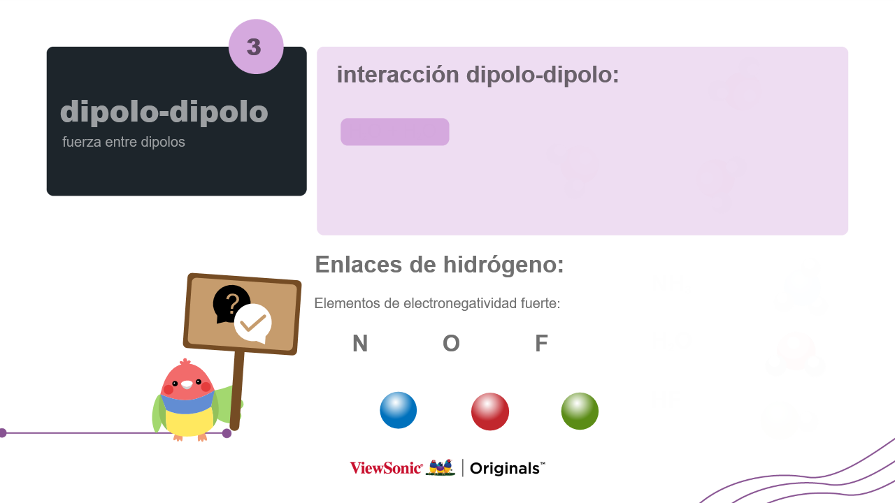 - Utilizar un ejemplo de interacción dipolo-dipolo para explicar el concepto.
