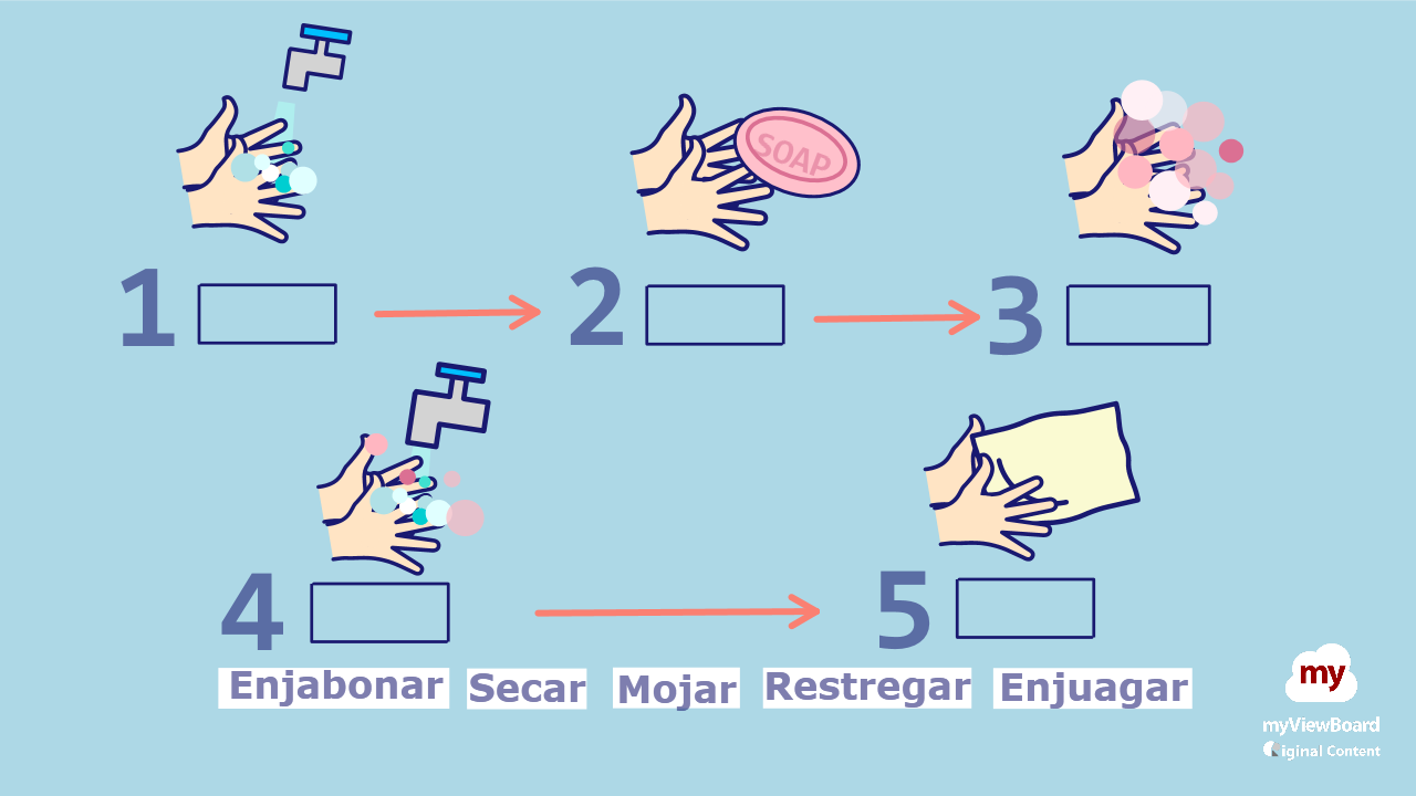 - Arrastre las etiquetas para que coincidan con la técnica correcta de lavado de manos.