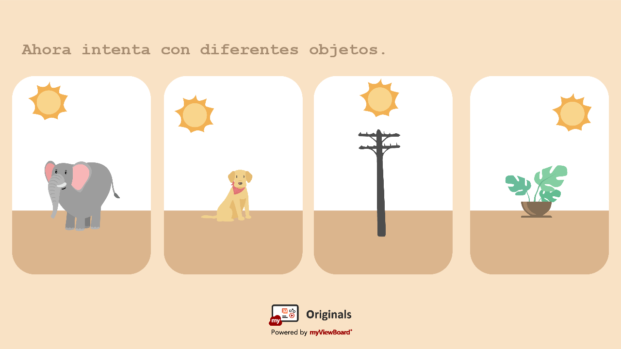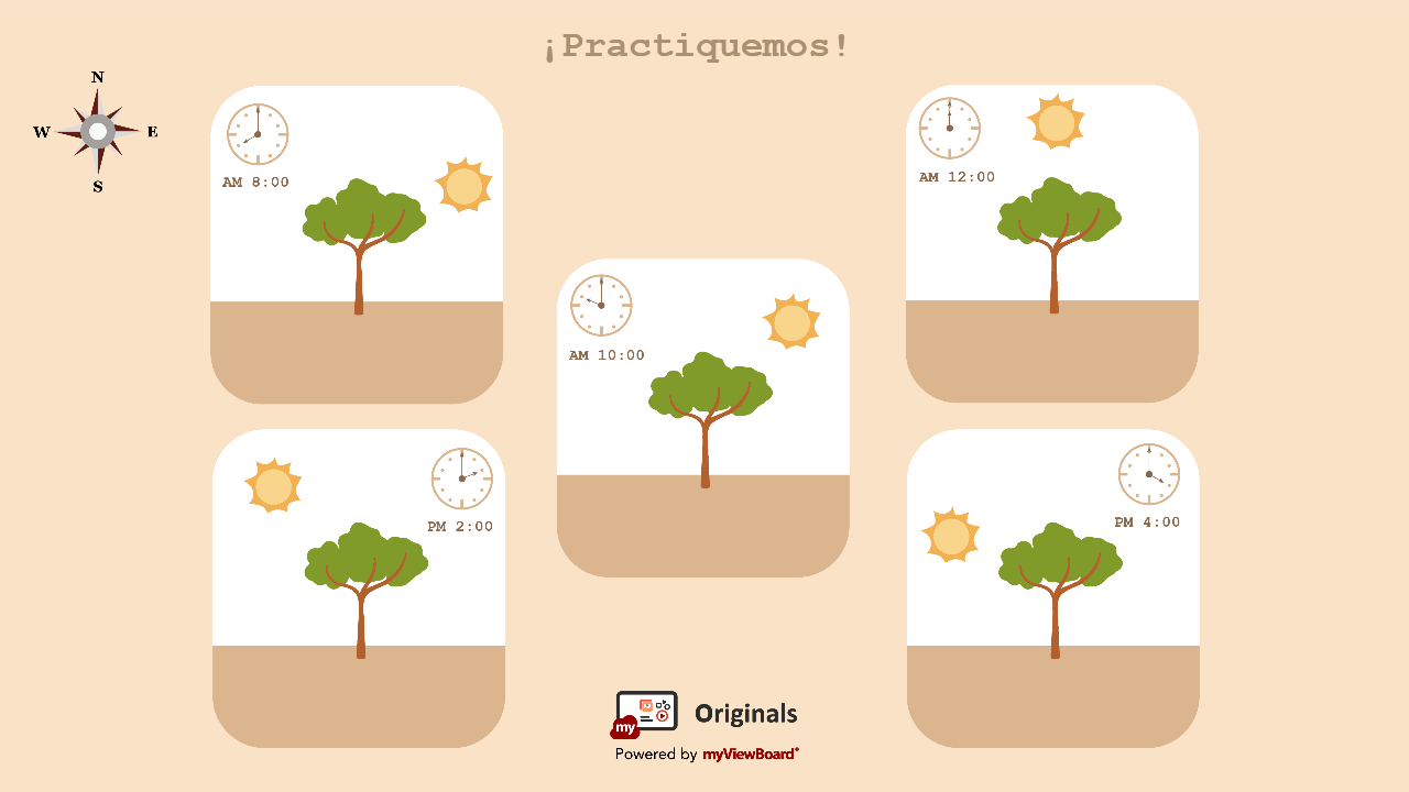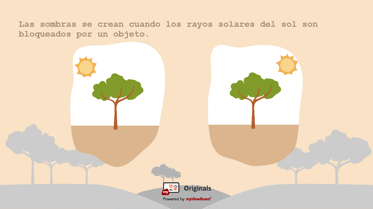 Practica con la hoja de trabajo Originals diseñada para estudiantes de ciencias de 3º - 4º grado para observar la posición del sol en cada imagen y dibujar la sombra del árbol.