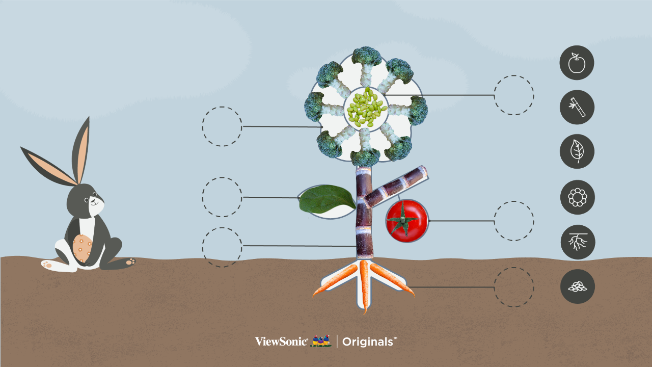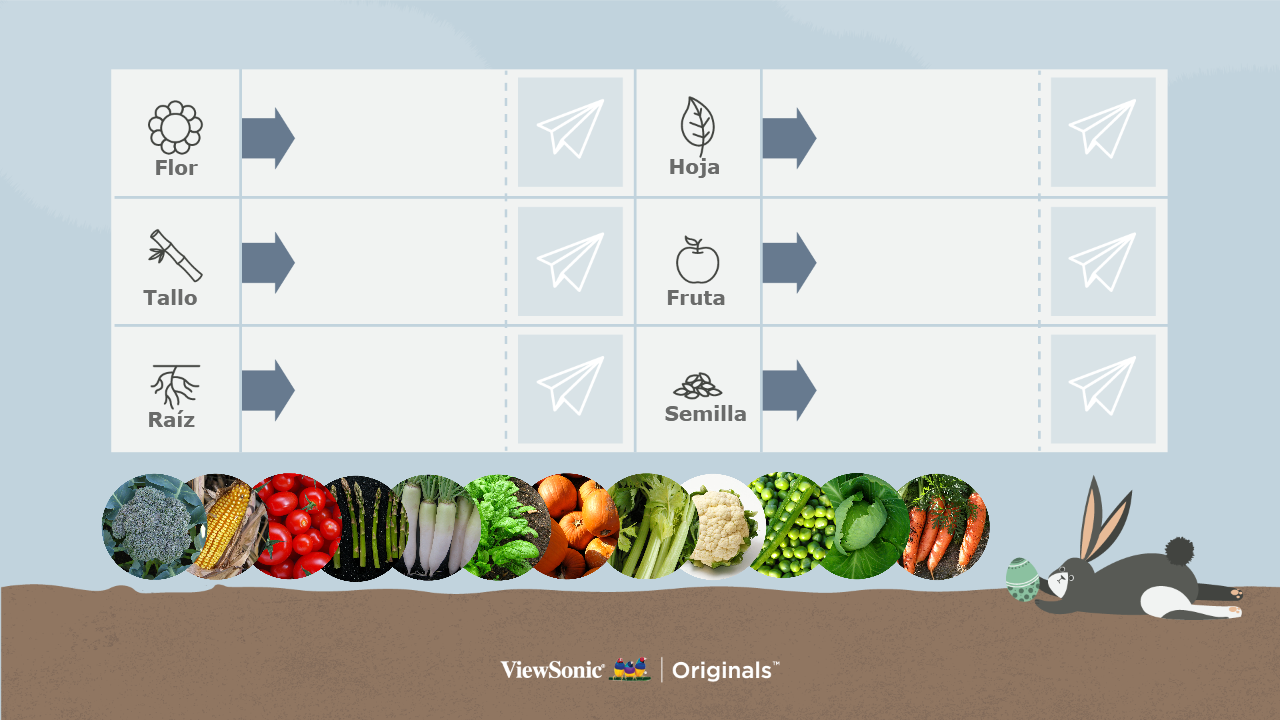 - Haz que los alumnos clasifiquen las imágenes en la parte de la planta que comemos (flor, tallo, raíz, hoja, fruto, semilla) y utilizando myViewBoard lancen la imagen que ven en la vida real.