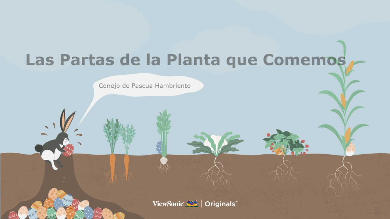 Ayudemos al hambriento conejito de Pascua a encontrar las partes correctas de las plantas para comérselas.