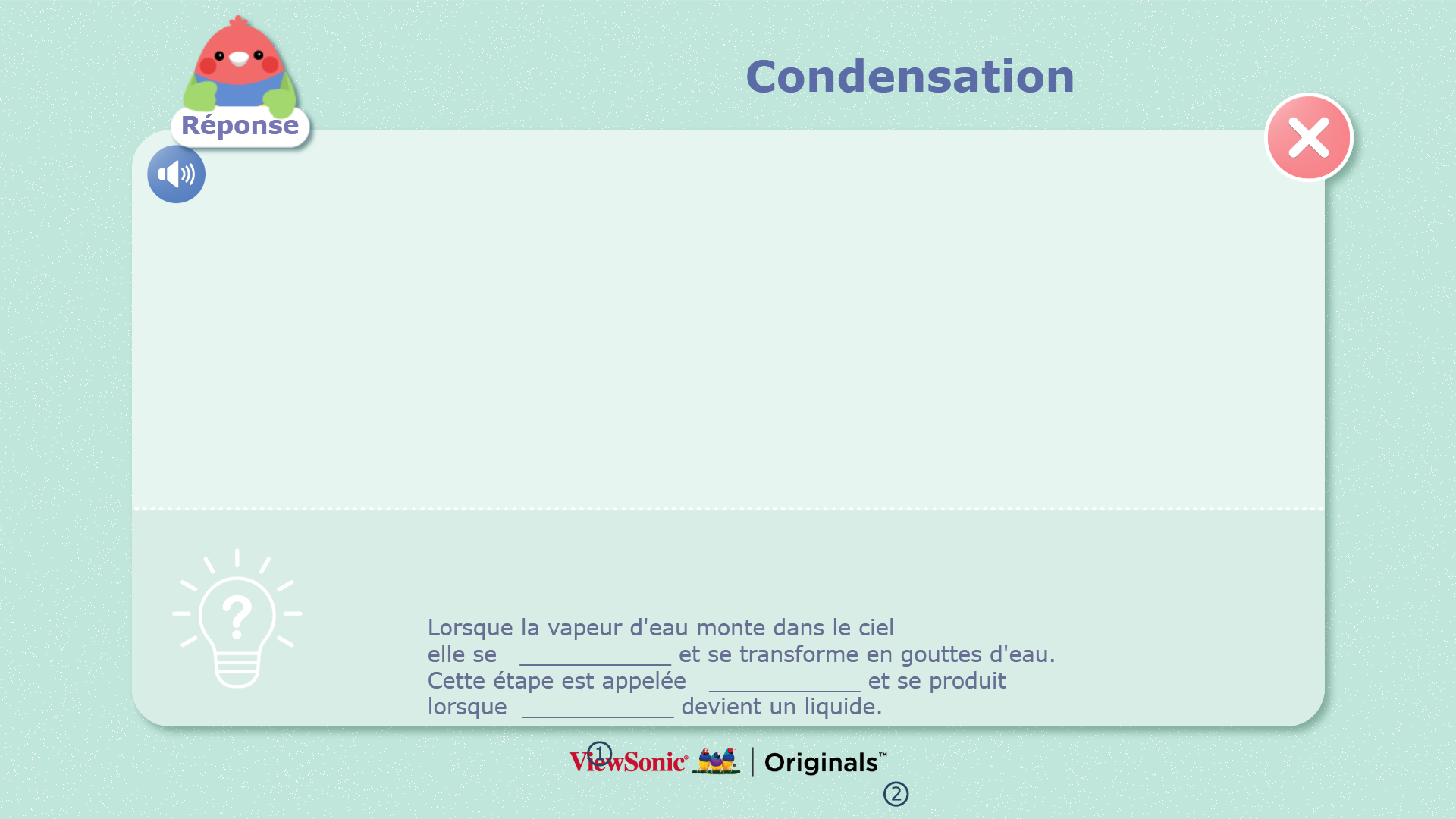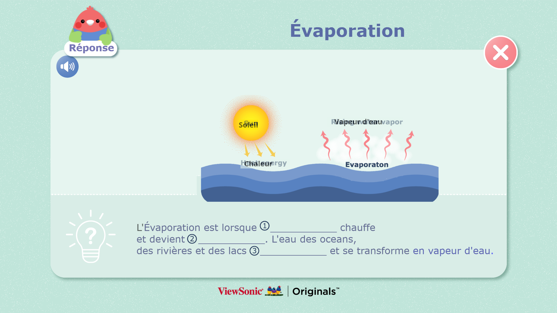 - Les élèves peuvent cliquer sur les différentes étapes du cycle de l'eau pour en savoir plus.