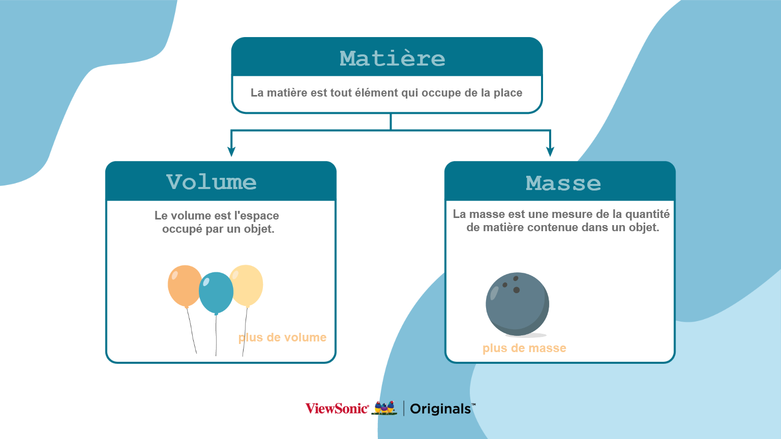 - Organisateur graphique sur la matière pour les enseignants afin de parler de ce qu'est la matière et de la différence entre le volume et la masse.