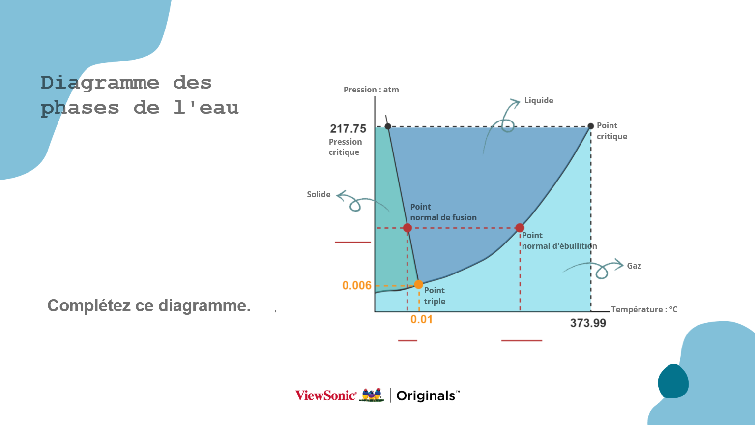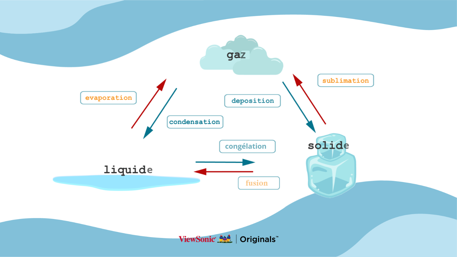 - Une fiche d'exercices sur les changements d'état de la matière intégrée à la participation et au commentaires des élèves en classe ou à distance en utilisant la fonction myViewBoard Partager.