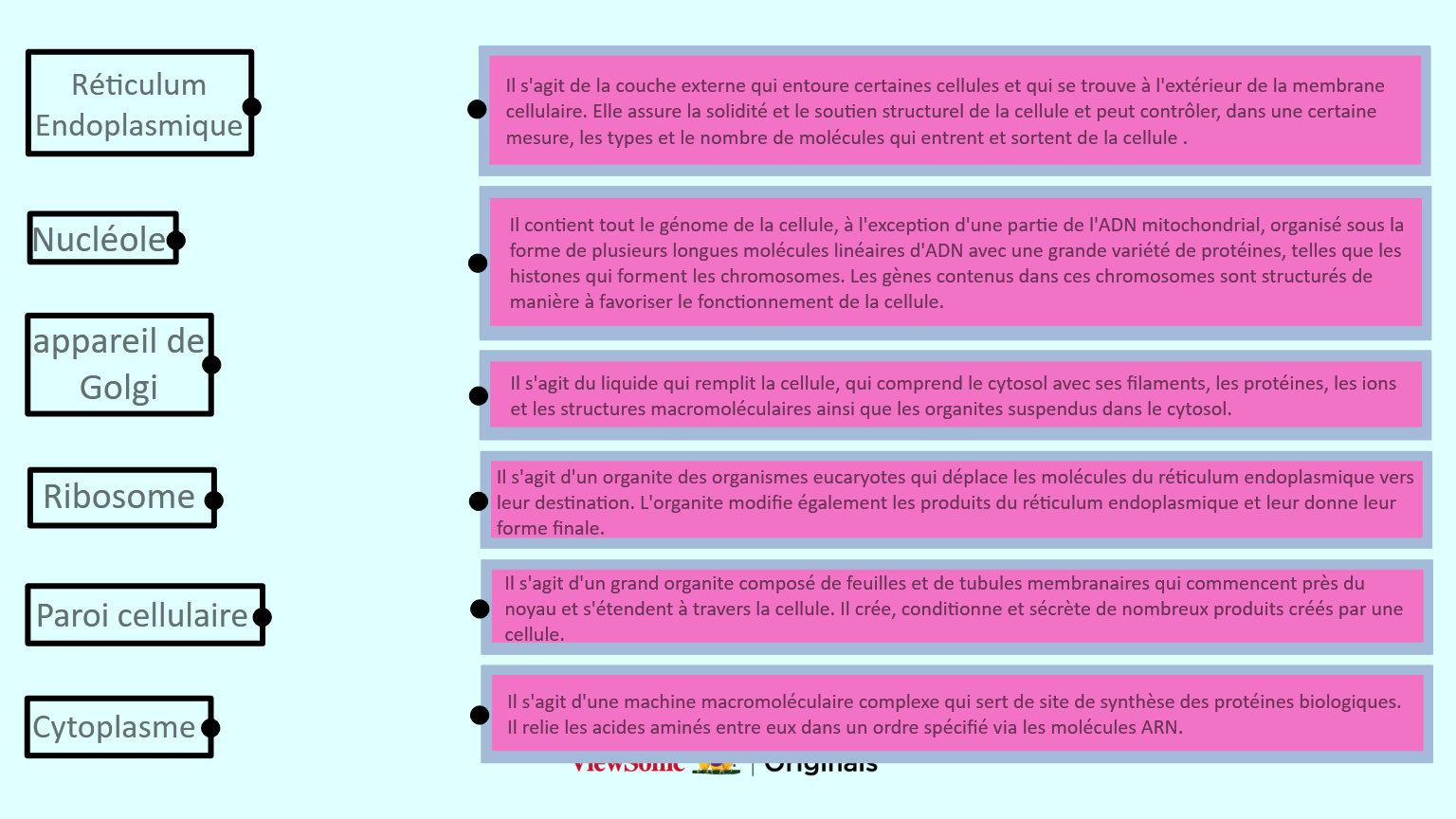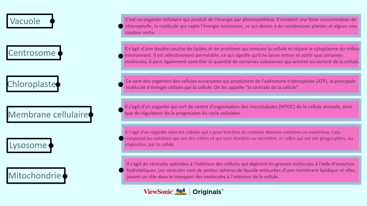 - Partie 2 - Associer : Associez l'organite à la fonction correcte.