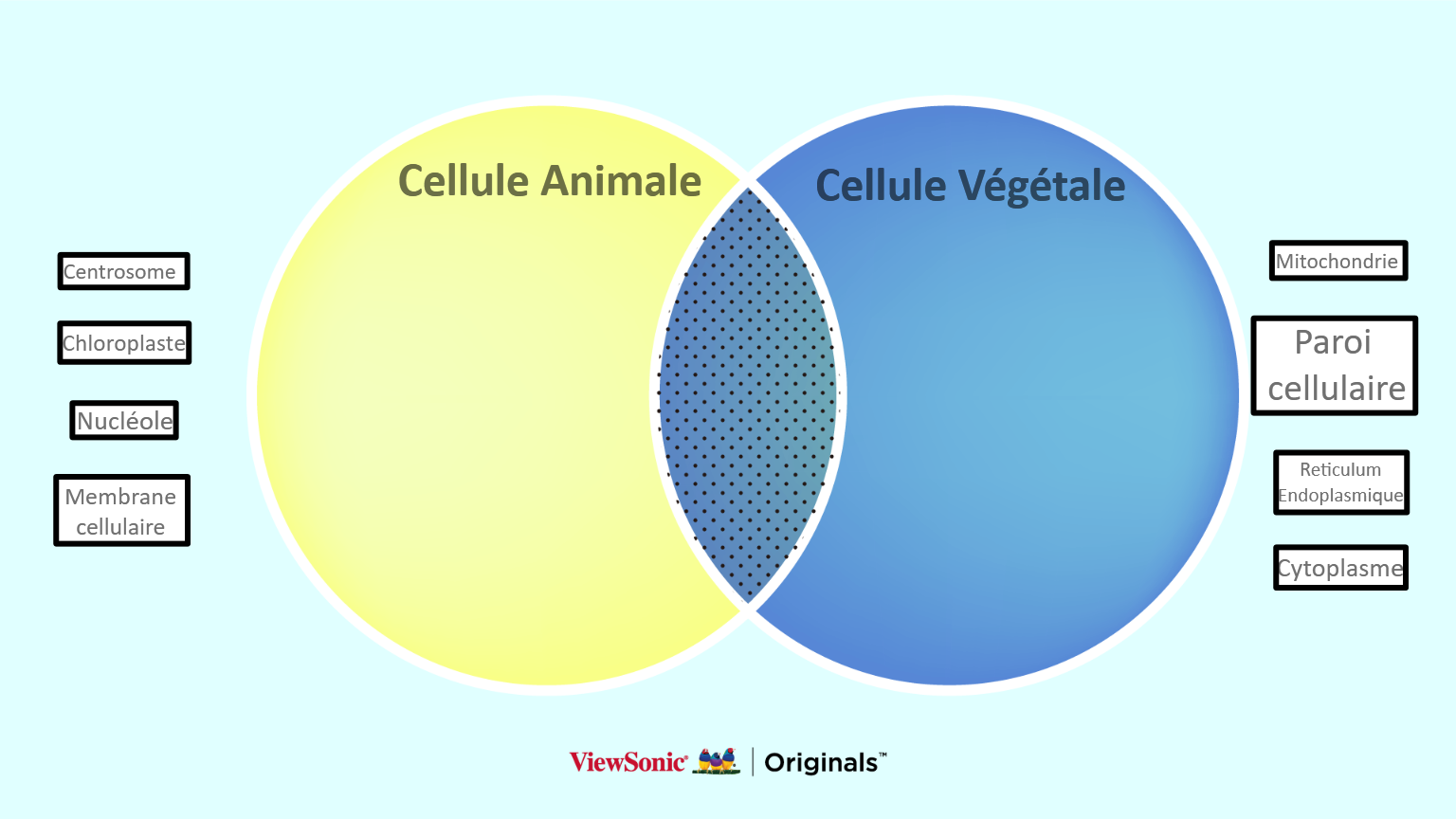 - Utiliser les diagrammes de Venn pour comparer et opposer les organites clés des cellules animales et végétales.