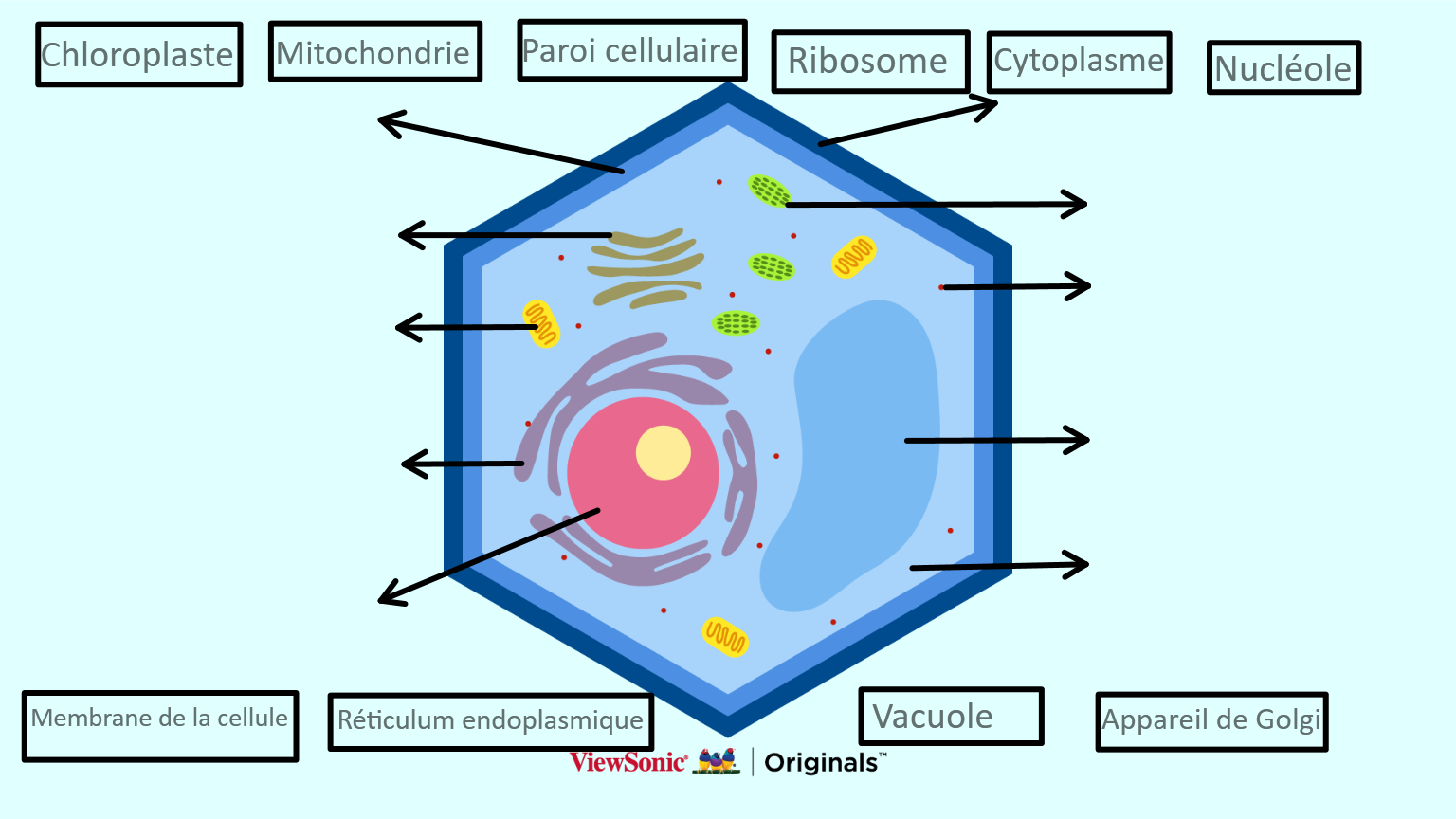 - Partie 3 - Organiser : Faites glisser les organites de la liste vers la bonne section : Cellules animales, Cellules végétales ou Toutes les cellules.