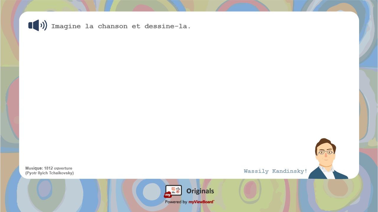 - Dessinons comme Kandinsky ! Écoutez la musique : ouverture de 1812 (Piotr Ilitch Tchaïkovski) et essayez de la dessiner.