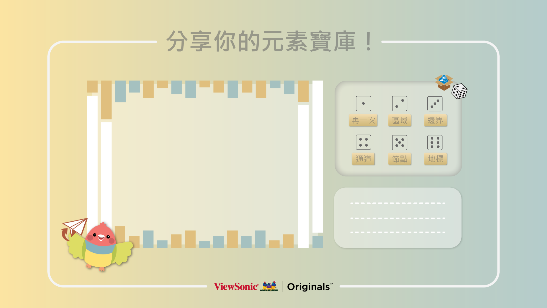 3. 分享元素寶庫:擲骰子並依照號碼對應,分享相關圖片並描述特徵。