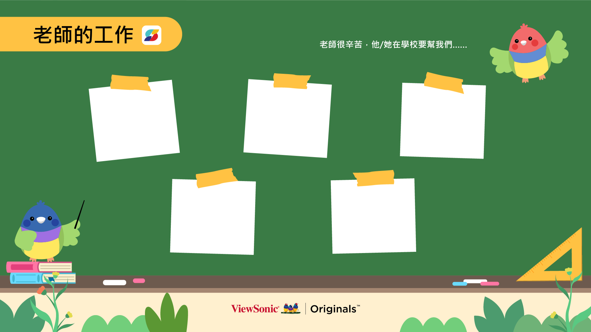 - 老師的工作:透過老師的工作內容,體會老師的辛苦。