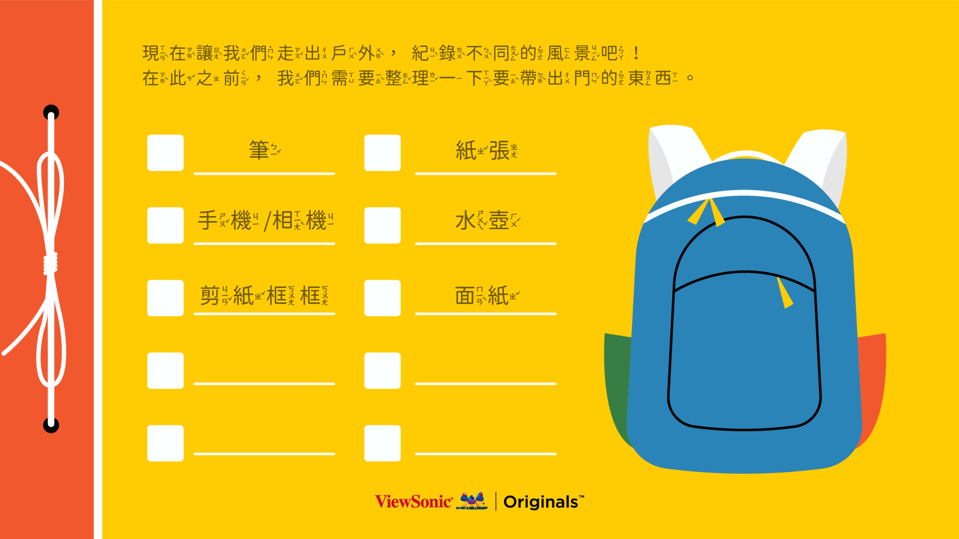 - 準備郊遊去:出門郊遊前,請學生勾選出遊物品清單。