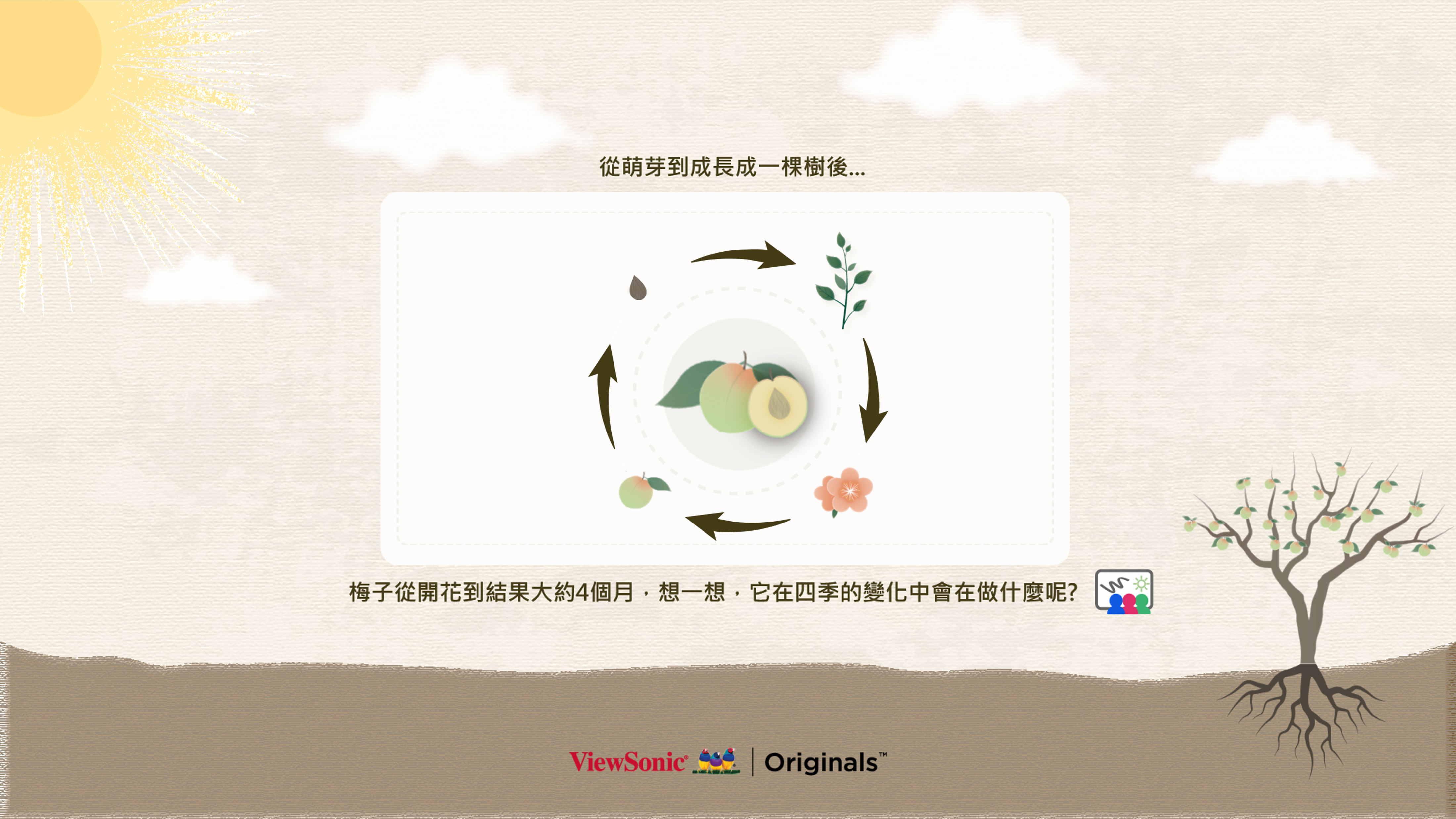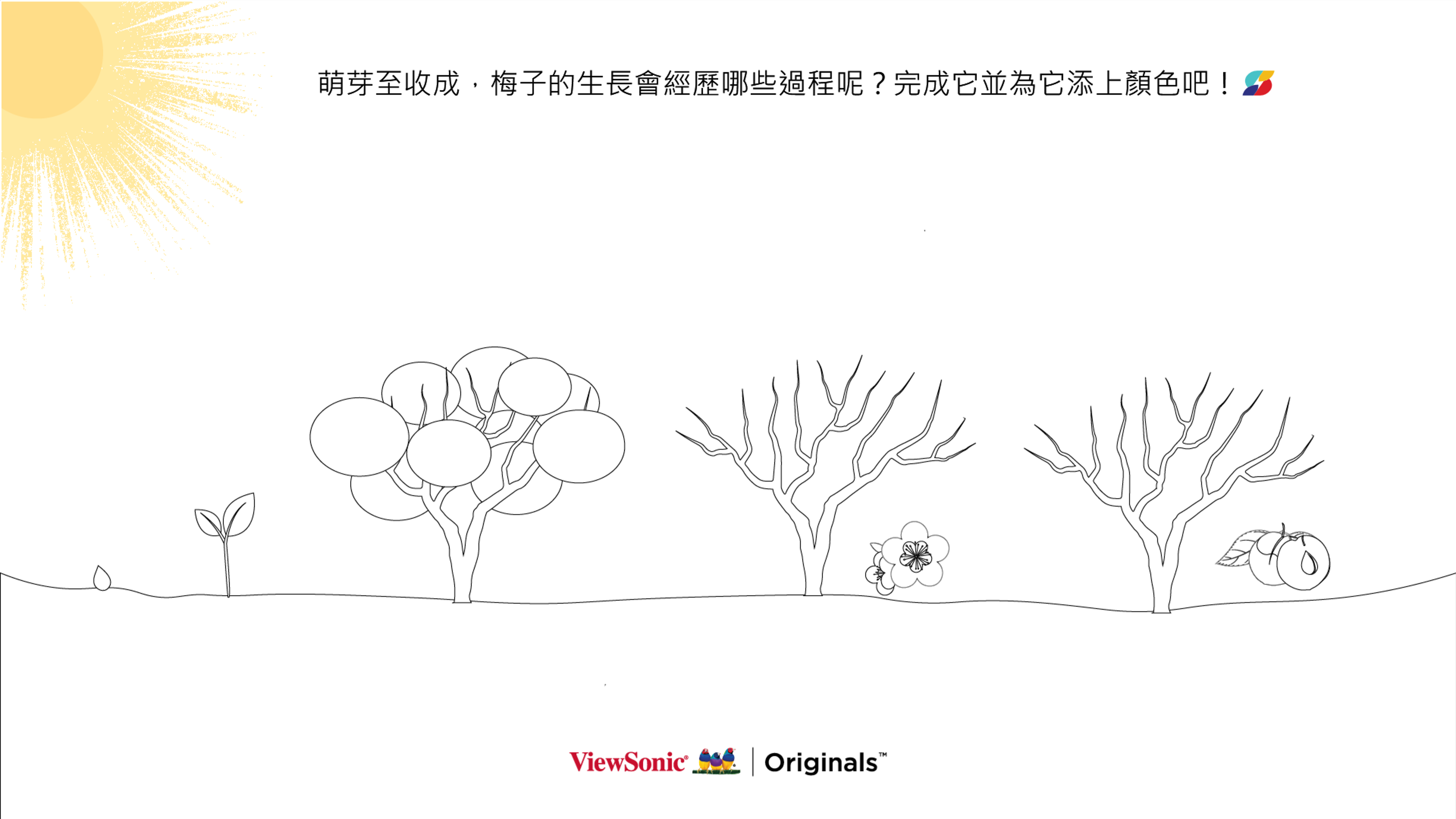 - 著色練習:透過完成的著色表,幫助學生認識梅子的生長週期的不同階段。可搭配ClassSwift,請學生將完成的繪圖創作回傳到數位白板。