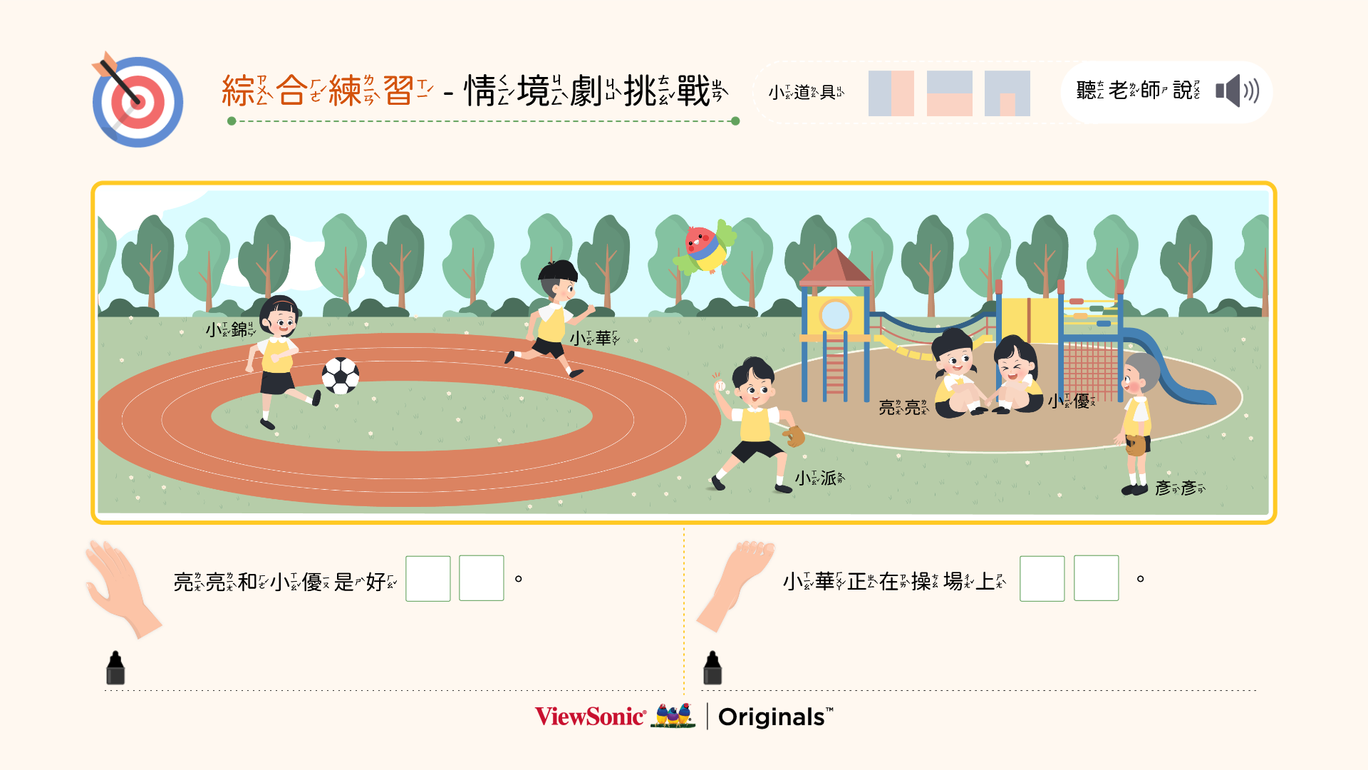🎬綜合練習-情境劇挑戰:透過情境劇造句,填空完成指定的句子,找出正確的部件分類並寫出國字。